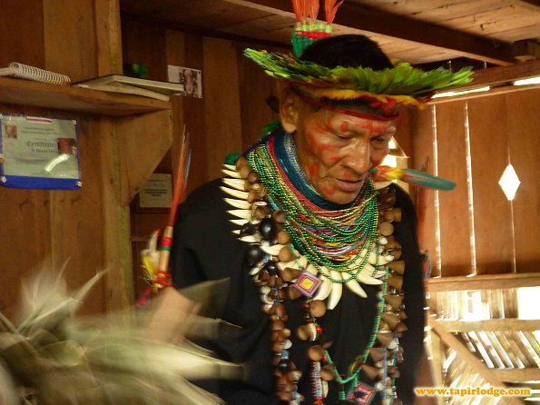 Nach dem Frühstück fahren Sie ungefähr 2 Stunden im Kanu flussabwärts. Während-dessen können Sie zum Beispiel Morphos (großer blauer Schmetterling), Tukane, Papageien und vielleicht sogar Affen beobachten. Sie werden einen Stop im Dorf Puerto Bolivar einlegen in welchem die Siona-Gemeinschaft lebt. Hier lernen Sie einen Schamanen und seine Familie kennen. Diese Menschen gehören der ethnischen Gruppe Cofan an. Der Schamane heilt seine Stammesangehörigen mit den Pflanzen des Dschungels und wird Sie in einige seiner Geheimnisse einweihen. Auf dem Rückweg flussaufwärts besuchen Sie die kleine Siedlung der Siona-Secoya. Sie erfahren dort mehr über das Leben im Amazonasgebiet. Als Mittagessen bekommen Sie eine Lunch-Box. Am späten Nachmittag, kehren Sie in die Lodge zurück, nach Einbruch der Dunkelheit geht es auf die Suche nach Kaimanen. F/M/A