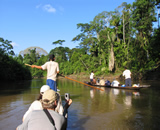 Nach dem Frühstück geht es auf dem Shiripuno Fluss auf ein lange Beoachtungstour (ca. 6-7 stunden Fahrzeit), Vögel und Affen werden mit grosser Sicherheit zu sehen sein. Wir versuchen die Paddelgeräusche so gering wie möglich zu halten um die Tierwelt nicht zu verscheuchen. Die frühe Stunde ist die beste Zeit um Vögel zu beobachten. Vorbei an kleinen Siedlungen machen wir in einer der Gemeinden Halt um unser Mittagessen einzunehmen. Der Strand lädt zum Baden ein. Die heutige Fahrt mit dem Kanu endet am Nenquepare Campingplatz wo wir unter Dächern aus Palmwedeln unser Zelte errichten. F/M/A
